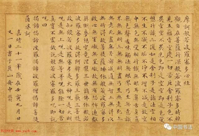 嘉靖二十一年壬寅(1542),文徵明时年七十三岁。往昆山,九月廿一日在舟中为收藏家周凤来小楷《心经》。