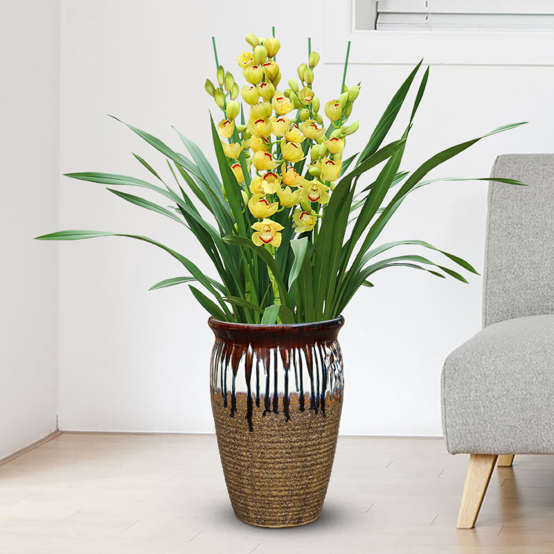 大花蕙兰需要生长在半阴环境中,可接受3~4小时左右的散光照射,促使其萌发更多的花芽开花,其生长环境温度不可超过35℃或者低于10℃,要保持15~25℃的适宜温度,让它旺盛进行生长。