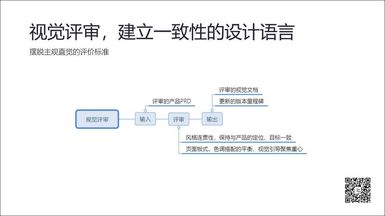 对视觉的评审,则是考虑如何建议规范性和一致性设计语言。