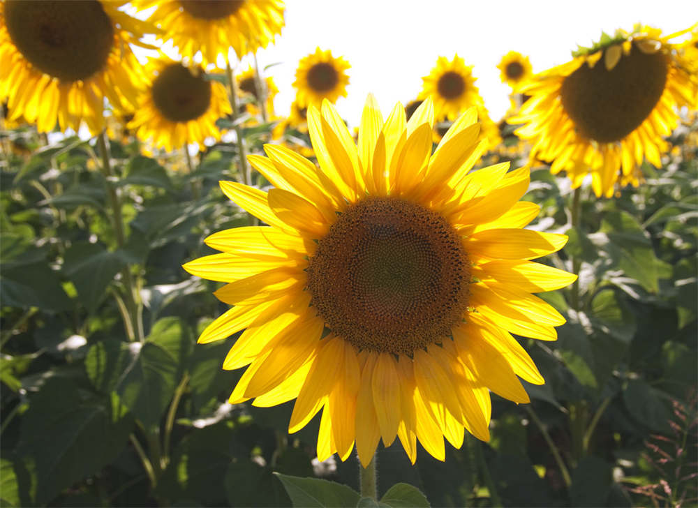 向日葵的生长需要充足的阳光,在光照充足的情况下,植株才会健壮的生长,花朵的颜色也比较艳丽有光泽。如果是向日葵的盆栽,可以将其完全放在向阳的地方,在光照强温度高的时候,一定要及时的补水。