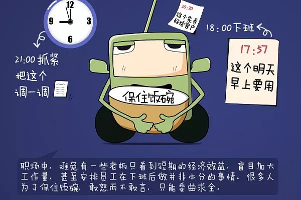 难免有些老板只看到短期效益,盲目加大工作量,甚至安排员工在下班后做非本分的事情,而员工,为了保住饭碗,只能委曲求全。